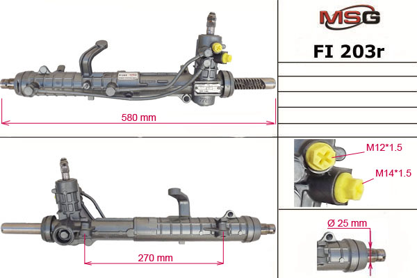 Гидравлическая рулевая рейка с шарниром крепления кулисы - шар и 2-мя точками крепления. TRW